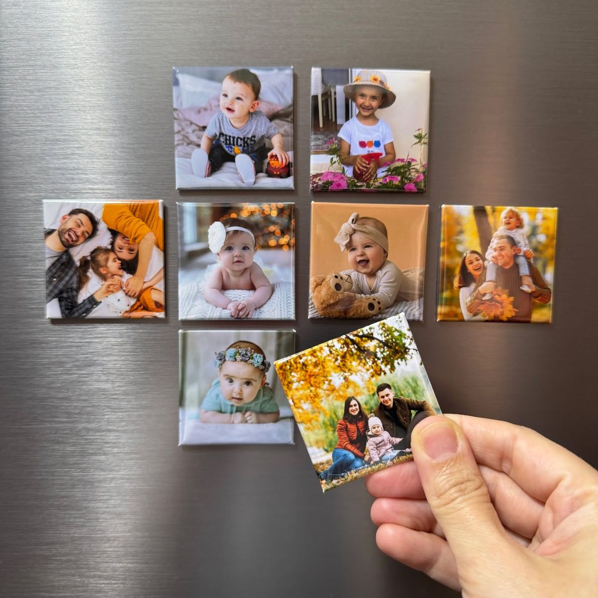 Turn your favorite snapshots into functional art! Whether it's a vacation moment, a family photo, or a snapshot of your furry friends, our high-quality photo magnets are the perfect way to showcase your memories. Personalize your space with unique keepsakes that remind you of the moments that matter most, every time you look at them.